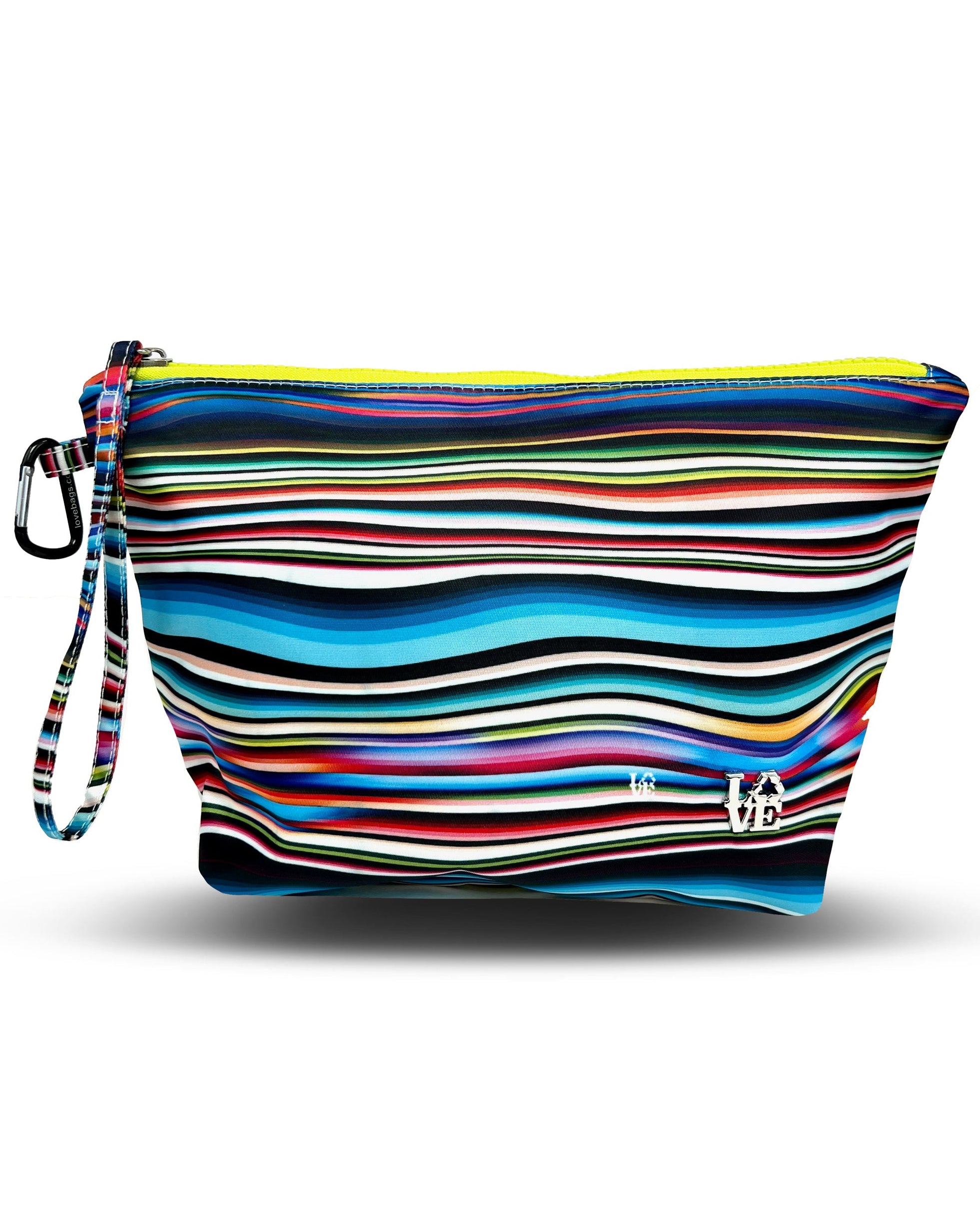Made from durable, water-resistant fabric with an easy wipe-clean exterior. Measures11.5" wide, 7" tall, and 4" deep, with enough room for your phone, cards, keys, sunscreen, and more. Weighs just 4 oz. Easy-access opening. Available in a wide range of LOVE Bags prints and colorways.