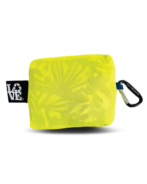 The Stash It tote is an incredibly convenient, lightweight, and washable shopping bag that folds into its own attached stretchy pouch for easy storage. It's the perfect space-saving companion that fits into a purse or pocket, making it ideal for on-the-go use. This spacious, gusseted tote can carry up to 35 lbs and features a quick clip for added portability. Crafted from 100% recycled plastic bottles, it's a sustainable and practical choice. Please note: this tote does not have a zipper closure.